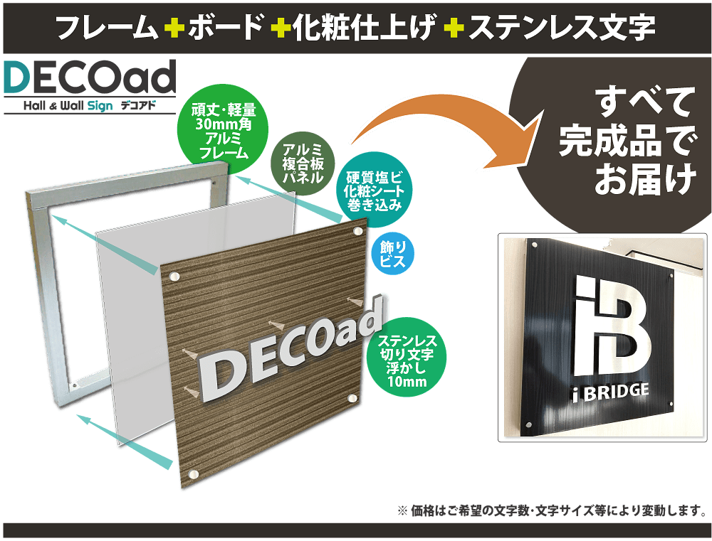 | ⑩壁面プレート看板 | アルミ複合板とインクジェットの上にラミネート保護をかけたプレート看板です。 |